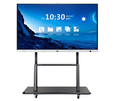 75寸交互式多媒体会议教学一体机原装液晶面板,分辨率3840*2160,型材面框,20点触摸,高透白钢化玻璃,预留OPS接口,支持安卓/电脑双系统,安全一体化设计,铝合金外框,圆弧角防撞伤设计;机器面框前置式圆钮轻触按键,按键具有一键节能、一键开关机,一键开启电脑、一键切换信号源功能。